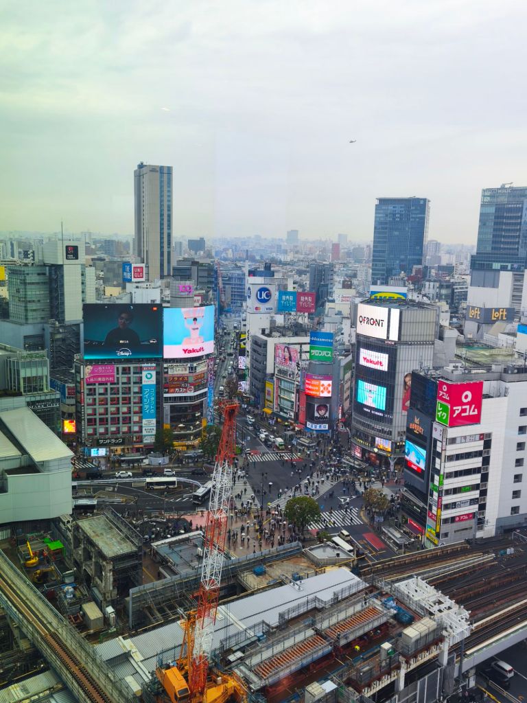 El cruce de Shibuya, también conocido por Scramble Kousaten, (スクランブル 交差点), utiliza un stop en las cuatro direcciones para permitir a los peatones transitar todo el cruce, durante los 47 segundos que los semáforos lo permiten, donde pueden llegar a tres mil personas simultáneamente. En los edificios que se encuentran en frente están situadas grandes pantallas de televisión.